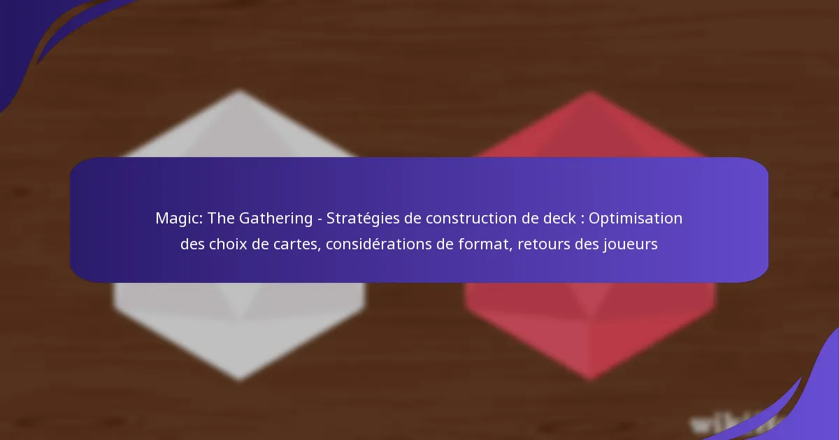 Les retours des joueurs sont cruciaux pour affiner les stratégies de construction de decks dans Magic: The Gathering. En incorporant des idées issues des tests de jeu et des interactions communautaires, les joueurs peuvent optimiser leurs choix de cartes et améliorer leur performance globale.