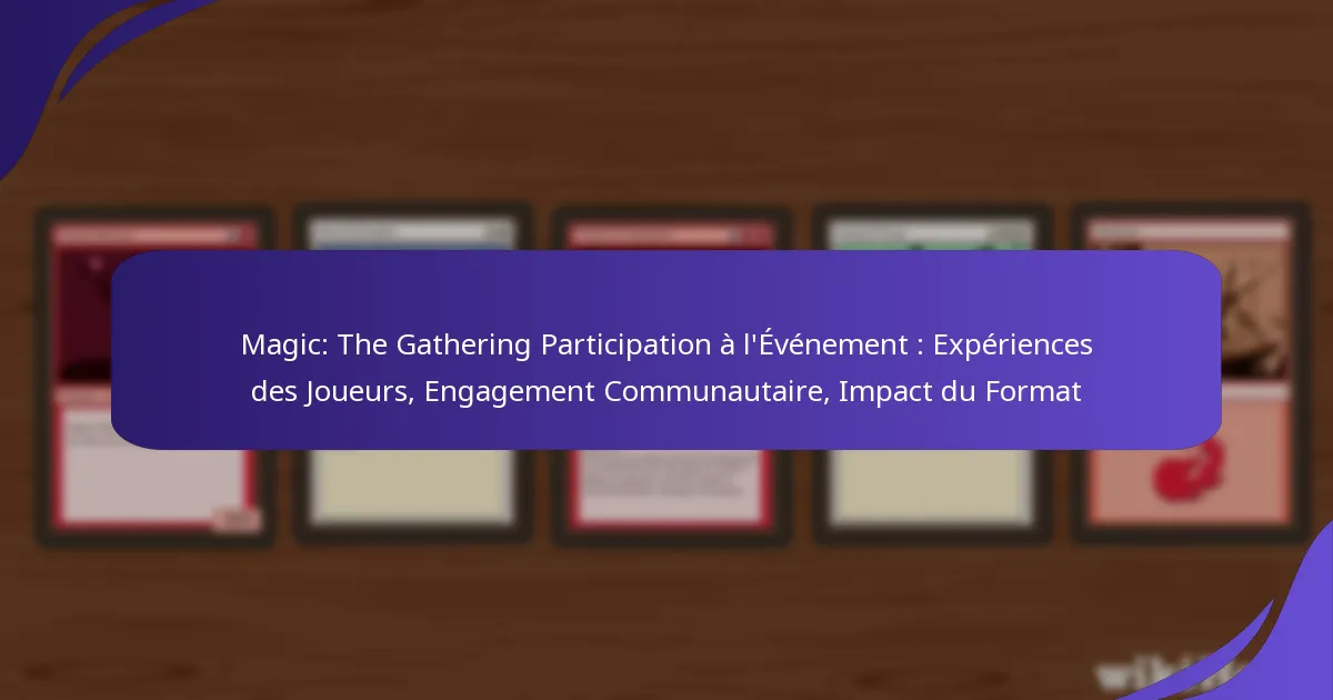 Les expériences clés des joueurs lors des événements de Magic: The Gathering englobent l’atmosphère immersive, les niveaux de compétition variés et les opportunités d’interaction sociale. Les participants s’engagent dans une communauté dynamique tout en partageant des histoires personnelles et des idées sur l’organisation des événements.