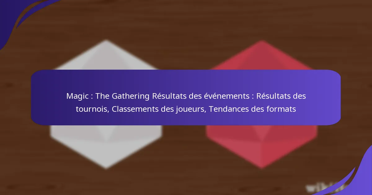 Les récents tournois de Magic: The Gathering ont révélé un paysage dynamique de decks compétitifs et de stratégies, avec des joueurs remarquables marquant leur empreinte lors d’événements majeurs. Ces résultats n’impactent pas seulement les classements des joueurs, mais mettent également en lumière les tendances évolutives à travers divers formats, y compris Standard, Modern et Commander, chacun répondant à des préférences de jeu variées.