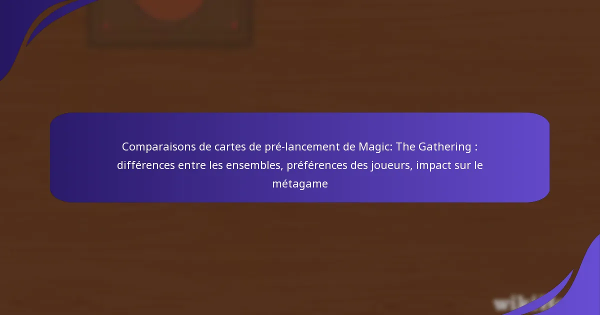 Les ensembles de pré–lancement de Magic: The Gathering diffèrent par leurs mécaniques, leurs thèmes, leurs types de cartes et leurs stratégies de jeu. Chaque ensemble introduit des éléments uniques qui peuvent avoir un impact significatif sur les préférences des joueurs et le méta global.