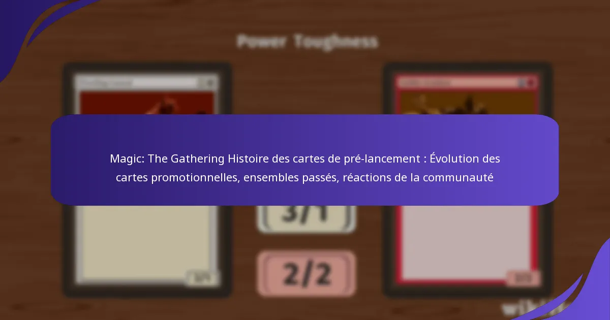 L’histoire des cartes promotionnelles de pré-lancement de Magic: The Gathering illustre l’évolution du jeu et la relation dynamique entre la communauté et le produit. Au fil des ans, ces cartes ont évolué d’outils de marketing basiques à des objets de collection complexes qui influencent à la fois le gameplay et l’intérêt des collectionneurs. Les réactions de la communauté varient largement, les joueurs partageant leur enthousiasme et leurs critiques à travers diverses plateformes, mettant en évidence l’impact que ces cartes ont sur l’expérience Magic.