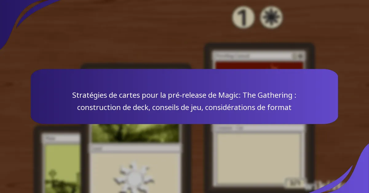 Participer à un événement de pré-lancement de Magic: The Gathering nécessite une bonne compréhension de la construction de deck et des stratégies de jeu pour maximiser votre succès. Concentrez-vous sur la création d’un deck équilibré qui met en avant les synergies entre les cartes, gère votre courbe de mana et inclut des options de retrait essentielles. De plus, s’adapter au format de deck scellé et au méta actuel améliorera votre prise de décision et votre performance globale lors des matchs.