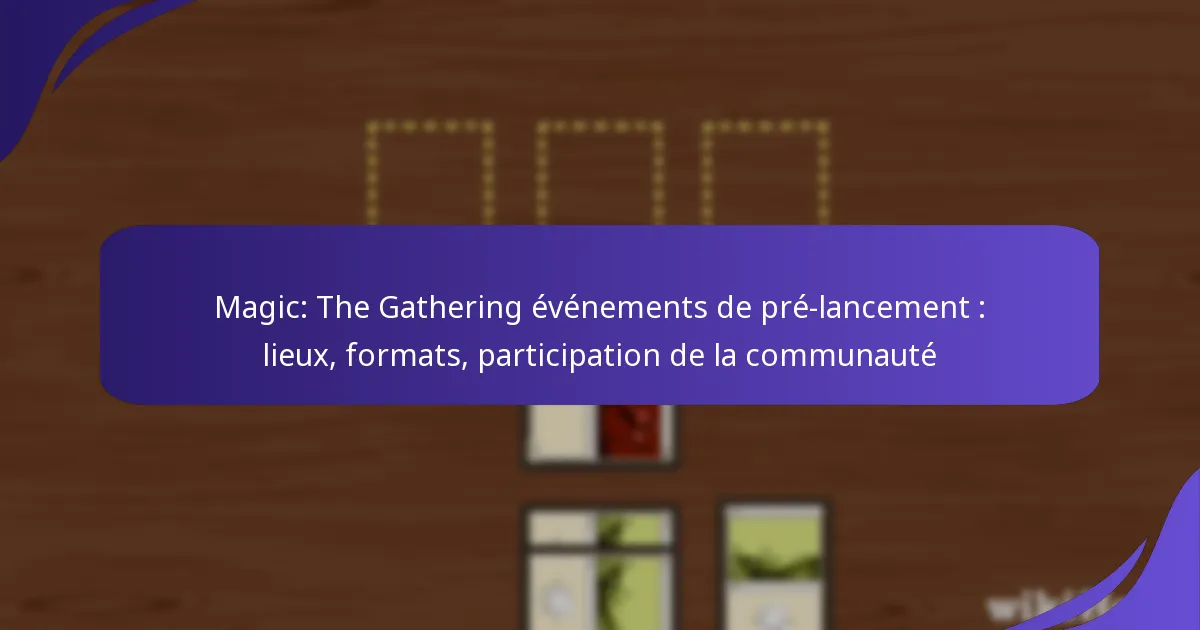 Les événements de pré-lancement de Magic: The Gathering ont généralement lieu dans des magasins de jeux locaux, dans les grandes villes et sur des plateformes en ligne. Ces événements permettent aux joueurs de découvrir de nouveaux ensembles avant leur sortie officielle, favorisant l’engagement communautaire et l’excitation.