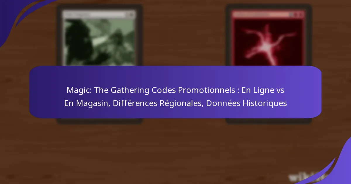 Les codes promotionnels de Magic: The Gathering sont des chaînes alphanumériques uniques que les joueurs peuvent échanger contre des récompenses dans le jeu, telles que des cartes ou des objets cosmétiques. Ces codes sont distribués via des plateformes en ligne et des promotions en magasin, chacune offrant des avantages distincts et des processus de rédemption. De plus, les différences régionales peuvent influencer la disponibilité et les types de promotions, rendant essentiel pour les joueurs de comprendre ces variations afin de maximiser leurs récompenses.